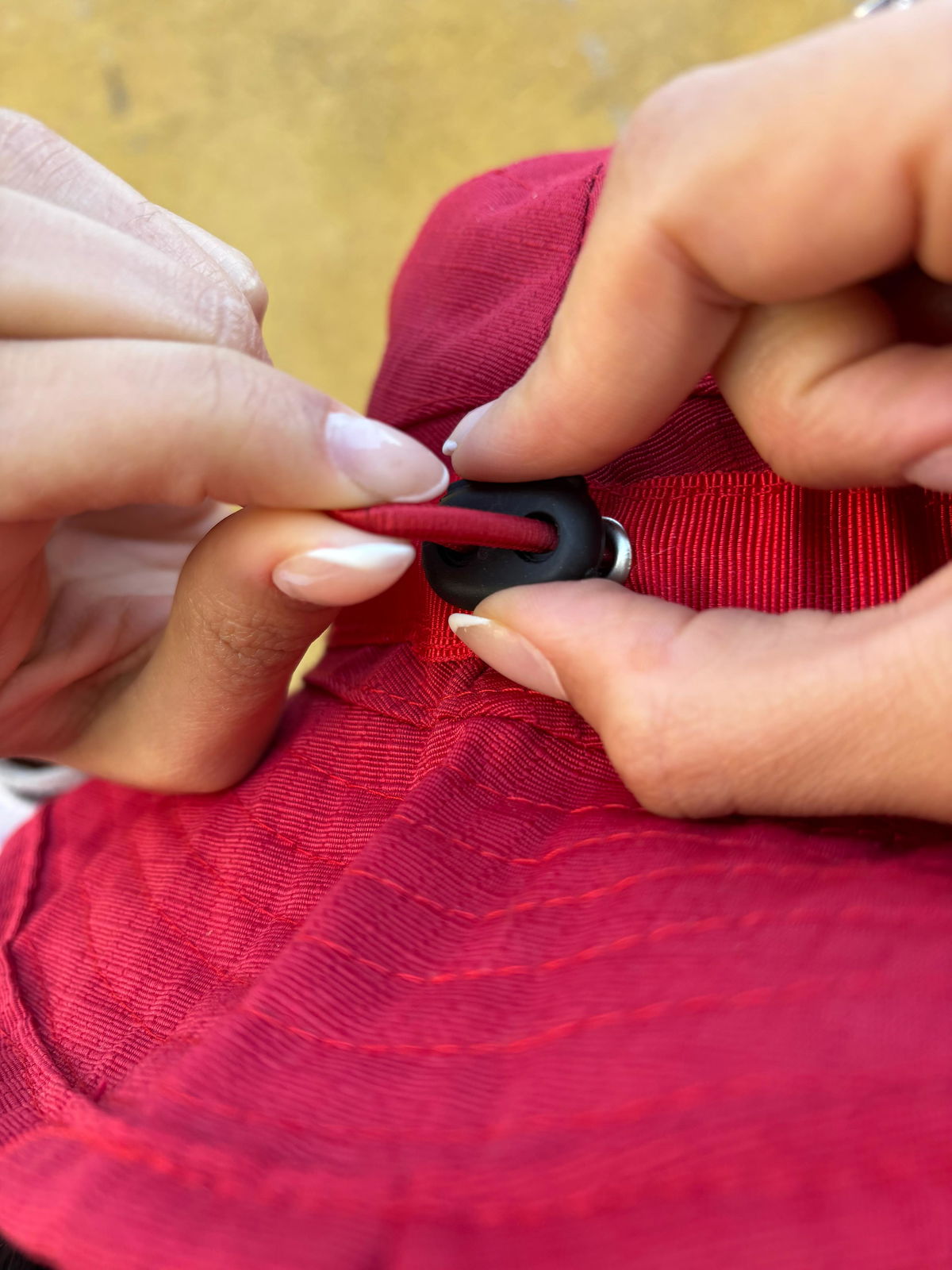 Cinta de sujeción ajustable al cuello, para evitar que se vuele con el viento