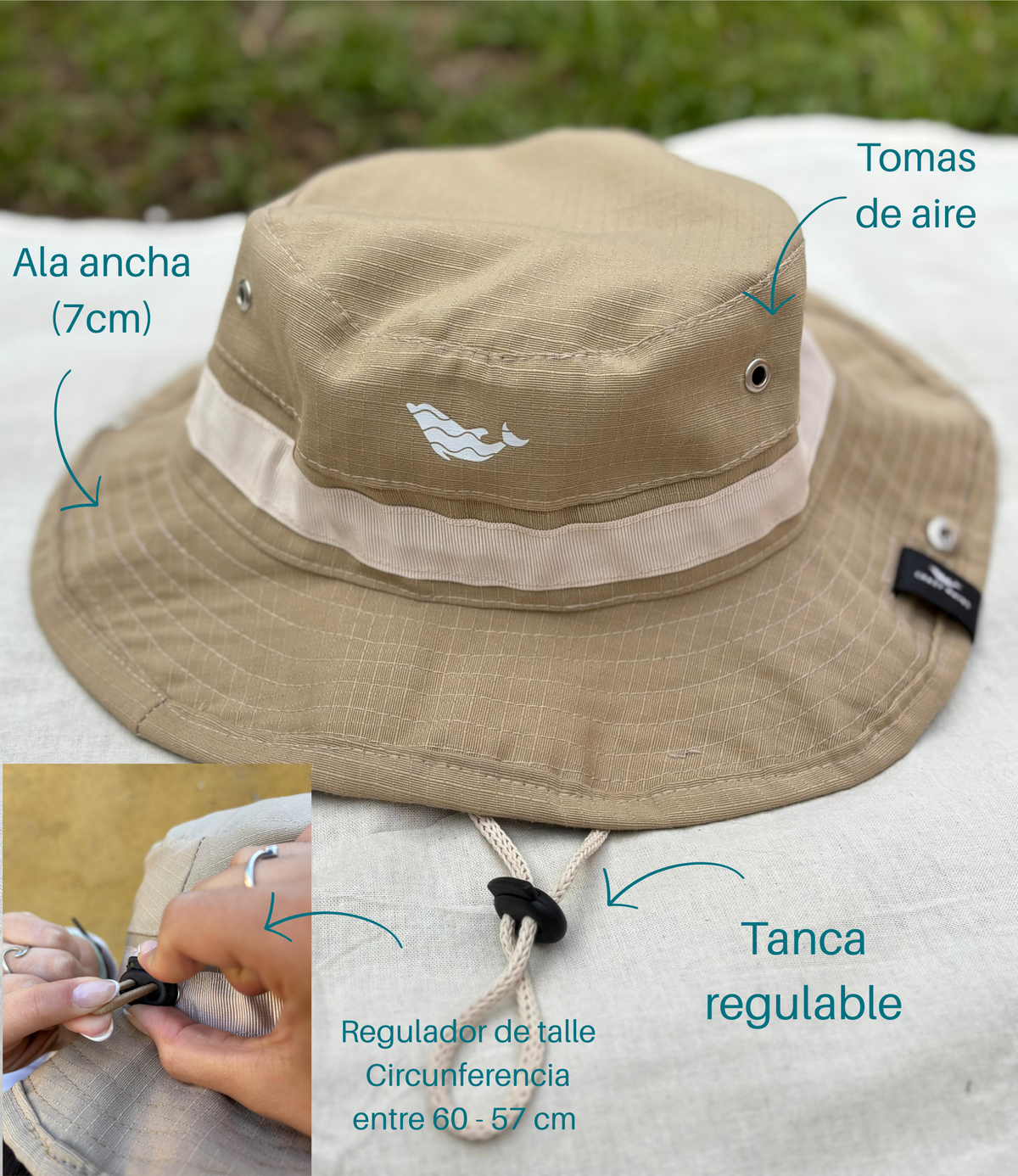 Nuestros pilusos Crazy Waves estilo australiano, están diseñados para resistir las condiciones más exigentes. Confeccionados en tela ripstop antidesgarro, son ideales para uso intensivo bajo el sol, en contacto con el agua y en movimiento constante. Circunferenciai regulable de 60 - 57cm.