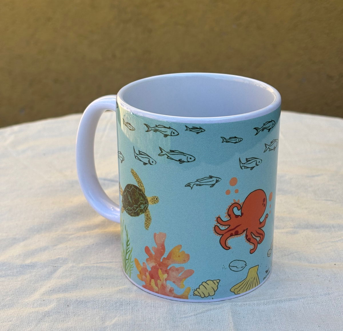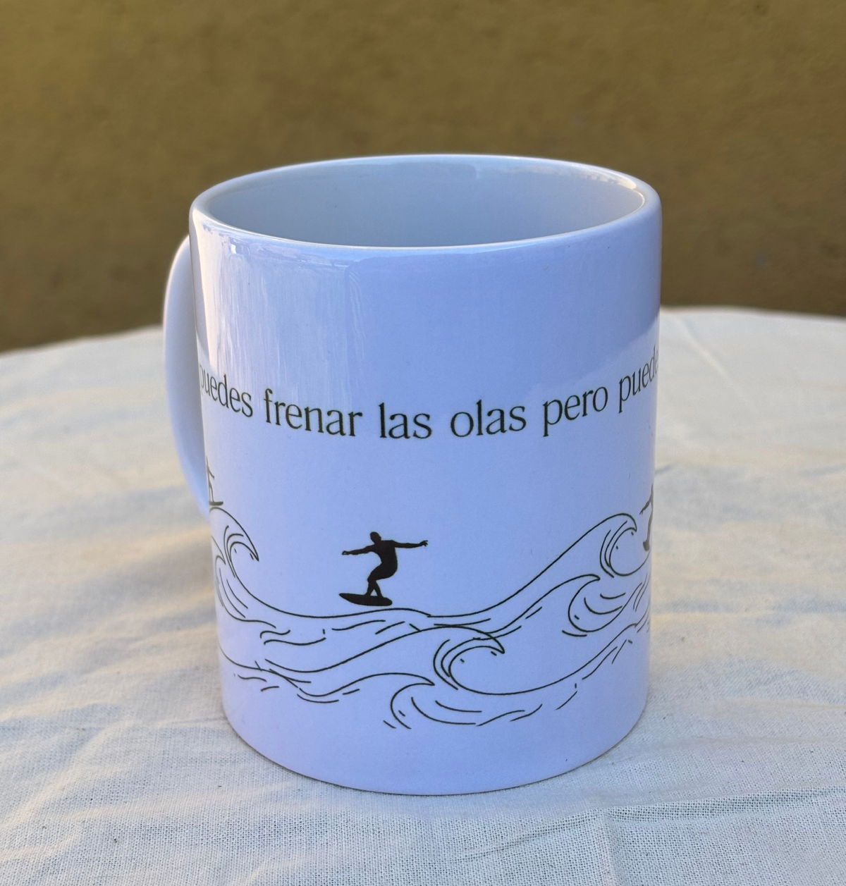 Cada taza presenta ilustraciones, frases o símbolos vinculados al mundo del guardavidas y el agua.